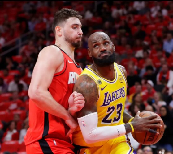 HOUSTON (AP) — LeBron James scored 29 points, including a tying 3-pointer with 13 seconds left in regulation, Marcus Smart had eight points in overtime and the Los Angeles Lakers took advantage of a Houston Rockets team missing Kevin Durant for a 112-108 win Friday night to take a 3-0 lead in ...