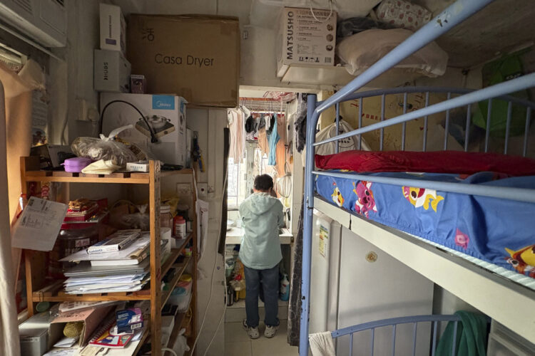 Her cramped Hong Kong home is one of four units carved out of what was once a single apartment. Most of the space is occupied by the bunk bed she shares with her husband and son, and their ...