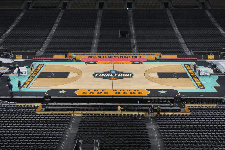 Down on hands and knees in the Alamodome, workers lurched forward to generate enough leverage to slide one large wood panel alongside another.