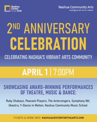 NASHUA - Spectacle Live and Nashua Community Arts are collaborating to celebrate the second anniversary of the Nashua Center for the Arts with a show featuring award-winning performances by members of Nashua’s vibrant arts community.