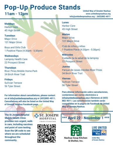 NASHUA – As spring blooms, so does the opportunity for residents to access free fresh food through the Pop-Up Pantries organized by the United Way of Greater Nashua with food provided by the Nashua Soup Kitchen and Shelter.