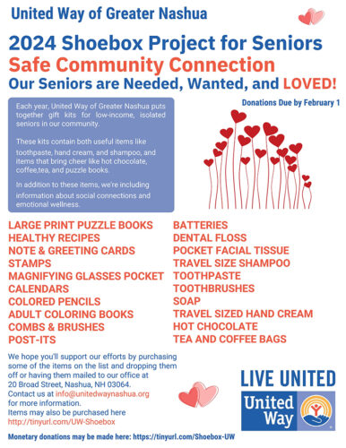 NASHUA - The United Way of Greater Nashua recently announced the kick off of its annual Shoebox Project for Seniors.