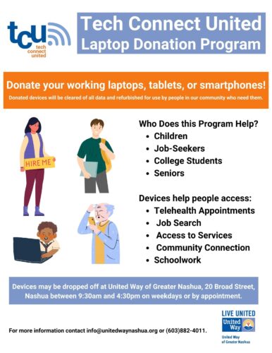 NASHUA — The United Way of Greater Nashua recently announced the initiation of its laptop donation program, Tech Connect United, a community-driven effort aimed at addressing digital equity by providing access to technology for those in need.