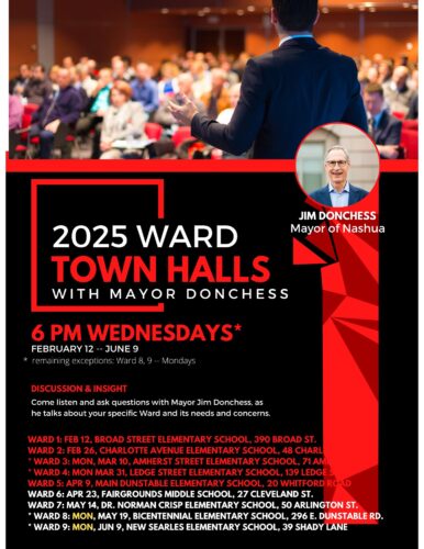 NASHUA – Mayor James Donchess has released the schedule of town hall meetings for the remaining voting districts of the city.