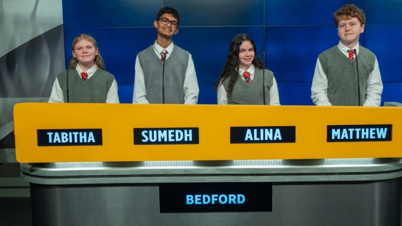DURHAM - The Bedford High School Bulldogs recently advanced to the quarterfinals of the Granite State Challenge, defeating the Hopkinton High School Hawks, 360-290.