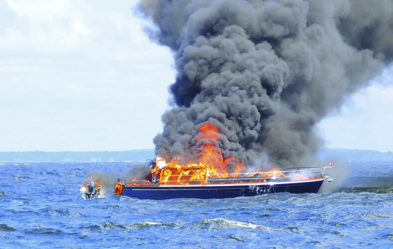 GEORGETOWN, Maine (AP) — Two boaters jumped overboard to save themselves after a fire engulfed a 48-foot yacht off the Maine coast, the Coast Guard said. Several lobster boats came to the rescue, and one plucked the men out of the water.