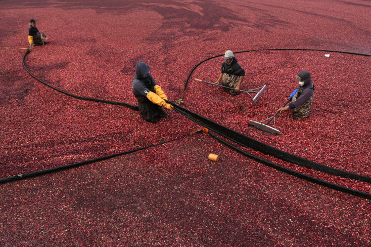 MIDDLEBORO, Mass. (AP) — Weeks before Thanksgiving, some of the cranberries that will be on dinner plates Thursday were floating on the Rocky Meadow bog in southeastern Massachusetts.