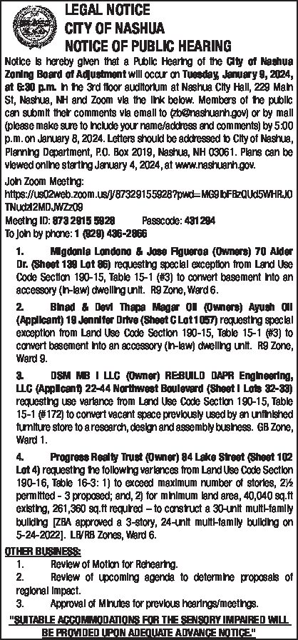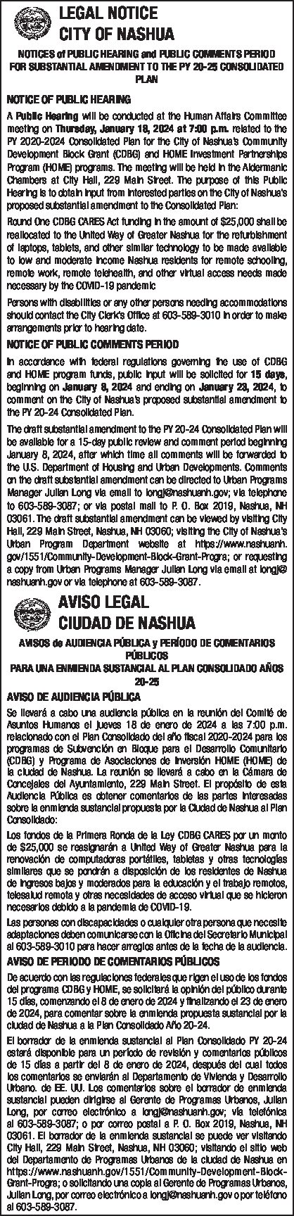 City of Nashua Con Plan Sub Amendment Public Hearing January 8, 2024 City of Nashua Amendment Hearing