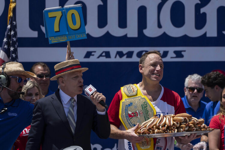 Chestnut, 41, consumed 70 1/2 hot dogs and buns in 10 minutes, falling ...