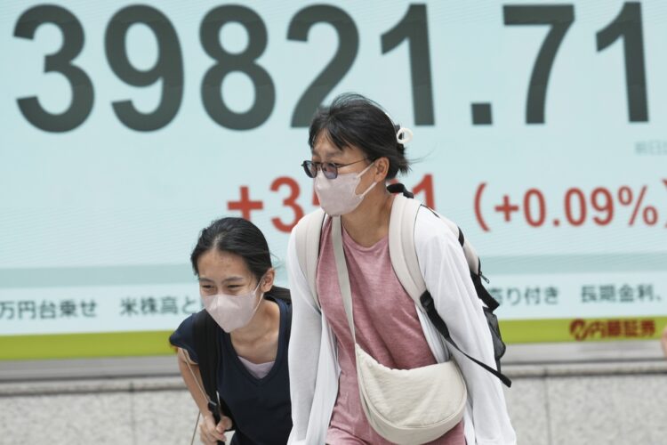 MANILA, Philippines (AP) — World shares mostly fell on Friday even as U.S. stocks climbed further into record heights as the clock ticks on President Donald Trump's July 9 tariff deadline.