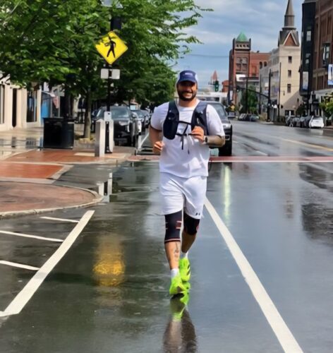 He was running down Main Street late Sunday morning, putting the finishing touches on a five-day, record-setting oddessey that saw him on foot go the approximate 200 miles from Pittsburg to Nashua. In doing so, ...