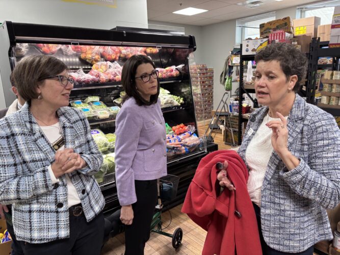 NASHUA — House Democratic Leader Alexis Simpson (D-Exeter) and State Rep. Laura Telerski (D-Nashua) recently toured the Nashua Soup Kitchen and Shelter to hear about the new hardships that have been thrust upon families already struggling to make ends meet.