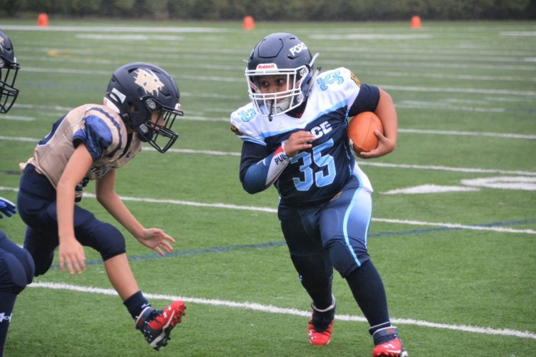 It was another rainy day of football for Nashua PAL Force as the teams headed out for their second games of the season. The 9U team came away victorious in their 18-6 win over Pelham, while the 10U team defeated Londonderry in a hard fought 21-13 win.