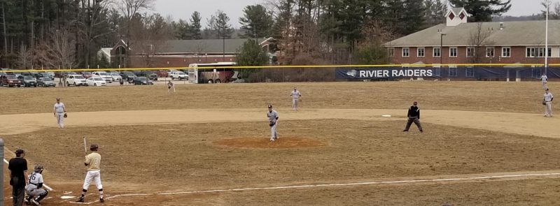 The first pitch in nearly two years at Harvey Woods Field, on the otherwise empty campus of closed Daniel Webster College.