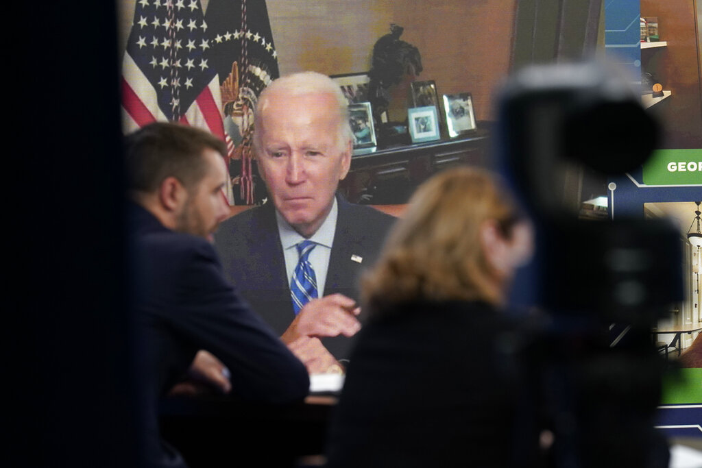 President Joe Biden listens as he attends virtually an event in the South Court Auditorium on the White House complex in Washington, Monday, July 25, 2022. Biden, who continues to recover from his coronavirus infection, spoke virtually with business executives and labor leaders to discuss the Chips Act, a proposal to bolster domestic manufacturing. (AP Photo/Susan Walsh)