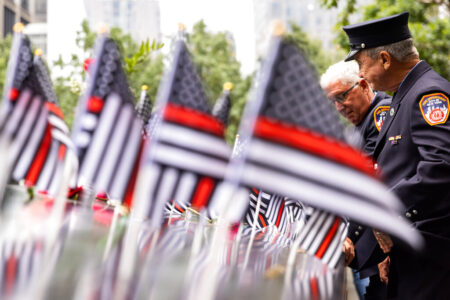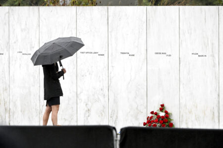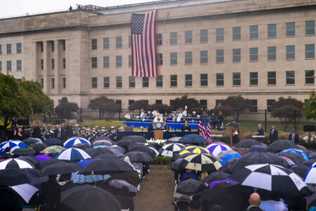 At the Pentagon, which also was targeted on 9/11, President Joe Biden vowed that the U.S. would continue working to root out terrorist plots and called on Americans to stand up for “the very democracy that guarantees the right to freedom that those terrorists on 9/11 sought to bury in the burning fire, smoke and ash.” First lady Jill Biden spoke at the third attack site, a field near Shanksville, Pennsylvania.