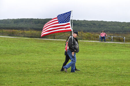 Visitors leave the ceremony commemorating the 21st anniversary of the Sept. 11, 2001 terrorist attacks in Shanksville, Pa., Sunday, Sept. 11, 2022. (AP Photo/Barry Reeger)