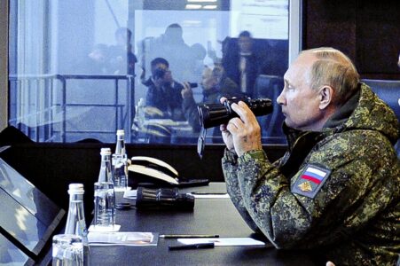 - FILE – Russian President Vladimir Putin watches the Vostok 2022 (East 2022) military exercise in far eastern Russia, outside Vladivostok, on Tuesday, Sept. 6, 2022. Putin has signaled that he could resort to nuclear weapons to protect the Russian gains in Ukraine – the harrowing rhetoric that shattered a mantra of stability he has repeated throughout his 22-year rule. (Mikhail Klimentyev, Sputnik, Kremlin Pool Photo via AP, File)