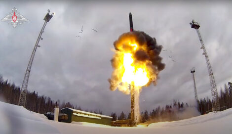 - FILE – This photo taken from video provided by the Russian Defense Ministry Press Service on Feb. 19, 2022, shows a Yars intercontinental ballistic missile being launched from an air field during military drills. With his room for maneuver narrowing quickly amid Russian military defeats in Ukraine, Putin has signaled that he could resort to nuclear weapons to protect the Russian gains in Ukraine – the harrowing rhetoric that shattered a mantra of stability he has repeated throughout his 22-year rule. (Russian Defense Ministry Press Service via AP, File)