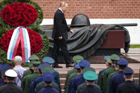 - FILE – Russian President Vladimir Putin attends a wreath laying ceremony at the Tomb of Unknown Soldier in Moscow, Russia, Wednesday, June 22, 2022, marking the 81st anniversary of the Nazi invasion of the Soviet Union. By unleashing the disastrous war in Ukraine, Europe’s largest military conflict since World War II, Putin has broken an unwritten social contract that saw the Russians tacitly agree to forego post-Soviet political freedoms in exchange for a relative prosperity and internal stability. (AP Photo/Alexander Zemlianichenko, Pool, File)
