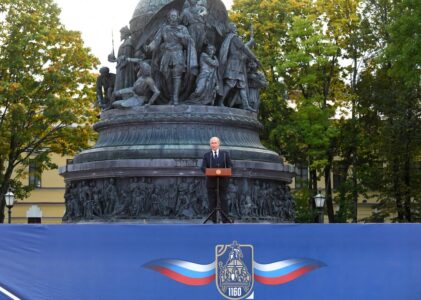 - FILE – Russian President Vladimir Putin delivers a speech during an event to celebrate the 1160th anniversary of Russian statehood in Veliky Novgorod, one of the oldest cities in Russia, being first mentioned in the 9th century, Wednesday, Sept. 21, 2022. Putin, who turned 70 on Friday, has found himself increasingly cornered with his army suffering humiliating defeats in Ukraine, hundreds of thousands of Russians fleeing his mobilization order and rifts opening up among his top lieutenants. (Ilya Pitalev, Sputnik, Kremlin Pool Photo via AP, File)