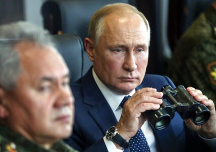 - FILE – Russian President Vladimir Putin, right, holds a binoculars as Russian Defense Minister Sergei Shoigu sits near watching the joint strategic exercise of the armed forces of the Russian Federation and the Republic of Belarus Zapad-2021 at the Mulino training ground in the Nizhny Novgorod region, Russia, Monday, Sept. 13, 2021. With his room for maneuver narrowing quickly amid Russian military defeats in Ukraine, Putin has signaled that he could resort to nuclear weapons to protect the Russian gains in Ukraine – the harrowing rhetoric that shattered a mantra of stability he has repeated throughout his 22-year rule. (Sergei Savostyanov, Sputnik, Kremlin Pool Photo via AP, File)