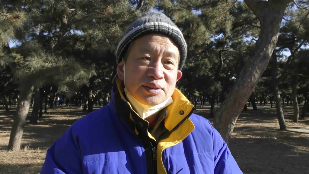 Li Liansheng, a 64-year-old man who had been vaccinated before he caught COVID-19, speaks about concerns of his friends about fevers, blood clots and other side effects of getting vaccinated at the Temple of Heaven park in Beijing, Sunday, Dec. 25, 2022. Chinese authorities are going door to door and paying people who are older than 60 to get vaccinated against COVID-19. (AP Photo/Wayne Zhang)