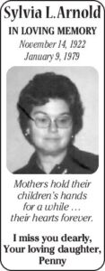 Sylvia L. Arnold By Staff | Jan 10, 2023 Sylvia L. Arnold Memorials Jessica Jo Smith Sylvia Arnold Ida A. Spylios