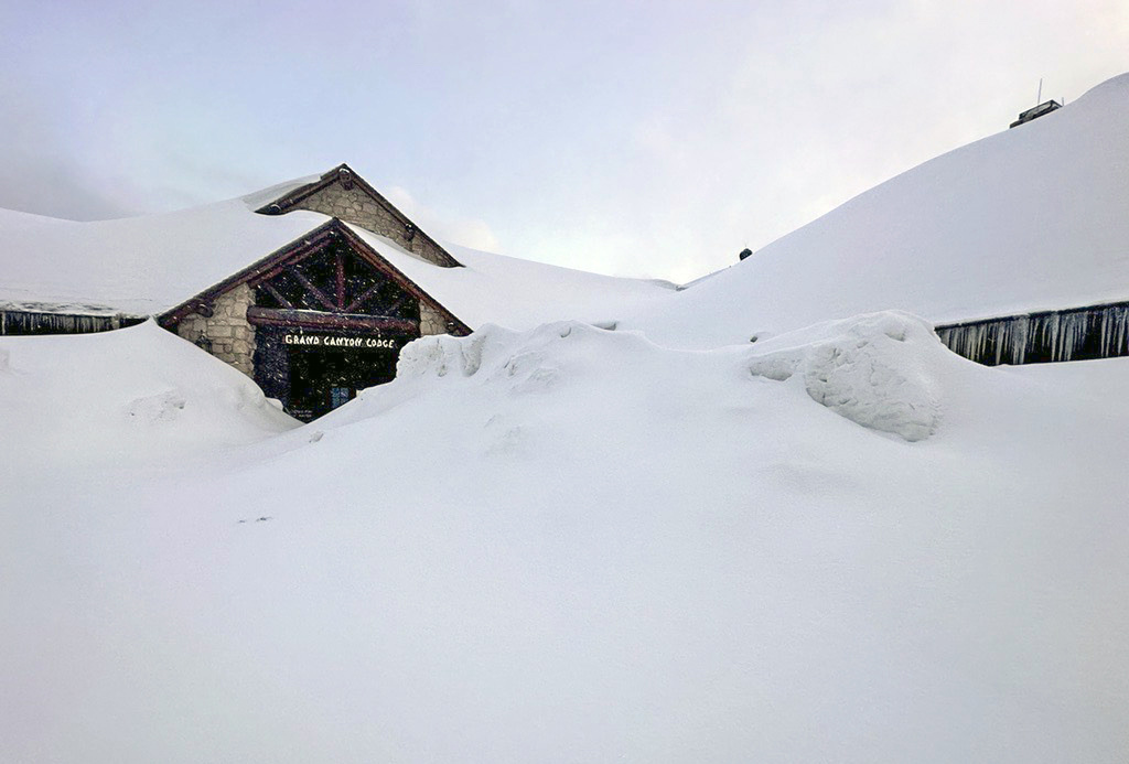 Photos shared by the park showed impassable areas and snow up to the eves of one of the entrances at Grand Canyon Lodge.