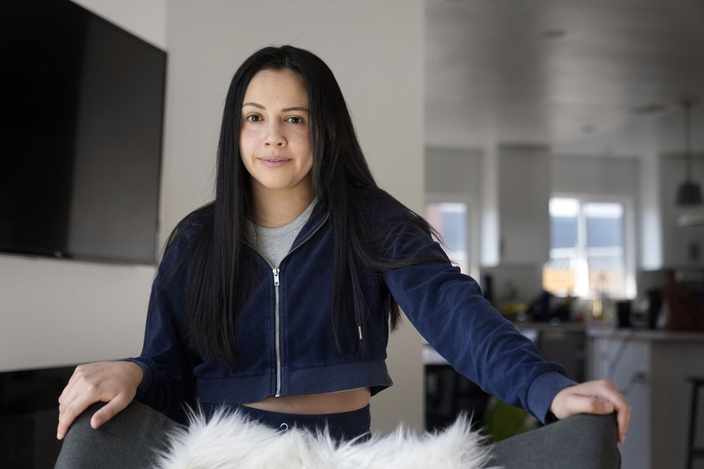 Cassandra Nuñez poses for a portrait at home Thursday, May 11, 2023, in Inglewood, Calif. Nuñez and her grandmother cast their first ballots in a U.S. presidential election in 2016. She was a first-year college student; her grandmother, a newly minted citizen. (AP Photo/Marcio Jose Sanchez)
