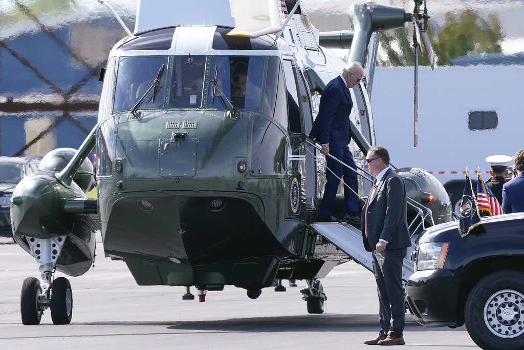 President Joe Biden steps off Marine One, Sunday, May 28, 2023, in Middletown, Del. Biden is attending his granddaughter Natalie Biden's high school graduation. (AP Photo/Patrick Semansky)