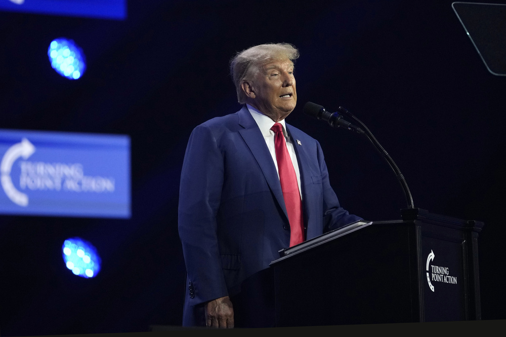 Former President Donald Trump speaks at the Turning Point Action conference, Saturday, July 15, 2023, in West Palm Beach, Fla.(AP Photo/Lynne Sladky)