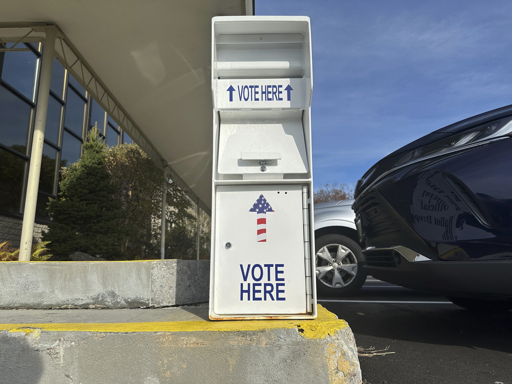 A ballot drop box for voting in the election is shown in Portland, Maine, on Thursday, Oct. 31, 2024. (AP Photo/Patrick Whittle)