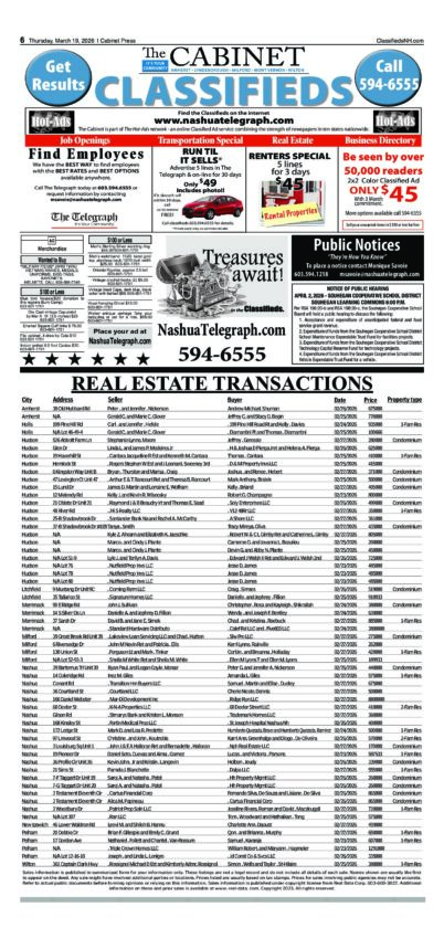 Cabinet Legals & Classifieds 3/19/2026 By Staff | Mar 19, 2026 C031926-A06 NewsletterToday's breaking news and more in your inboxEmail(Required) I'm interested in (please check all that apply)(Required) Daily Newsletter Breaking News Obituaries Are you a paying subscriber to the newspaper?(Required) Yes No Public Notice Cabinet Legals & Classifieds 4/2/2026 Telegraph Legals & Classified 4/5/2026 Cabinet Legals & Classifieds 3/26/2026