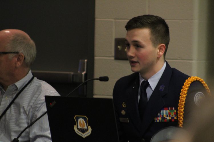 NASHUA – The Nashua Board of Education gathered Monday for its first meeting in three weeks. The evening began with a presentation from Nashua High School North’s Air Force Junior Reserve Officer Training Corps program representatives Maj. Brian Newton and Cadet Col. Adam Landry.