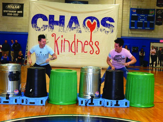 MERRIMACK – The secret that leaders from Recycled Percussion, junk rock band phenom, would perform at Merrimack High School was squelched until the Las Vegas celebrities commandeered the school’s loudspeaker.