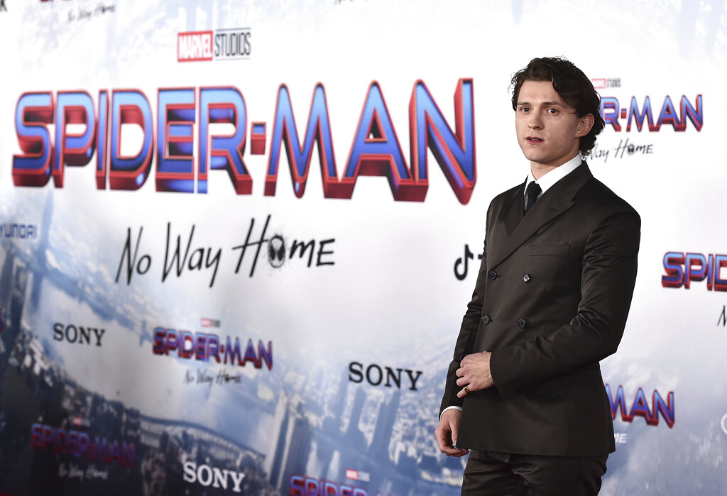 FILE - Tom Holland arrives at the premiere of "Spider-Man: No Way Home" at the Regency Village Theater on Monday, Dec. 13, 2021, in Los Angeles. “Spider-Man: No Way Home” has swung back on top of the box office during a holiday weekend where American theaters aimed to lure moviegoers with discounted $3 tickets. The first “National Cinema Day” nationwide promotion appeared to work with the highest-attended day of the year, drawing an estimated 8.1 million moviegoers on Saturday, Sept. 3, 2022, according to The Cinema Foundation. (Photo by Jordan Strauss/Invision/AP, File)