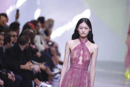 - A model wears a creation for the Elie Saab ready-to-wear Spring/Summer 2023 fashion collection presented Saturday, Oct. 1, 2022 in Paris. (Photo by Vianney Le Caer/Invision/AP)