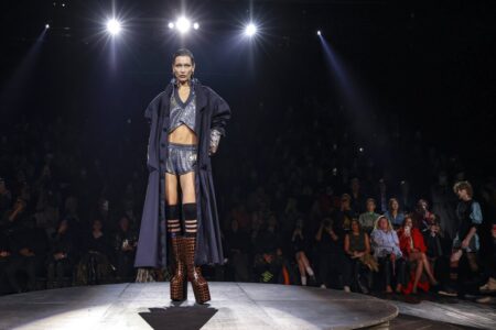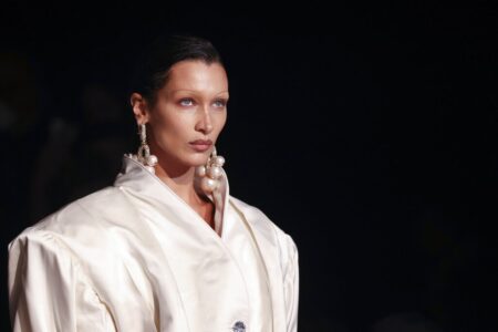 - Bella Hadid wears a creation for the Vivienne Westwood ready-to-wear Spring/Summer 2023 fashion collection presented Saturday, Oct. 1, 2022 in Paris. (Photo by Vianney Le Caer/Invision/AP)