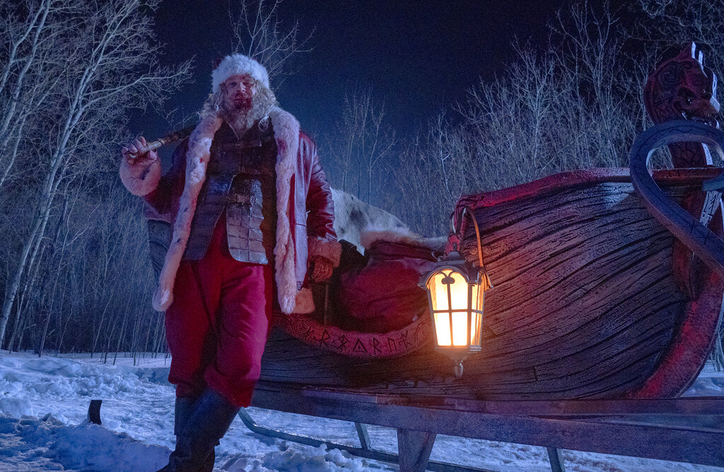 This image released by Universal Pictures shows David Harbour in a scene from "Violent Night." (Allen Fraser/Universal Pictures via AP)