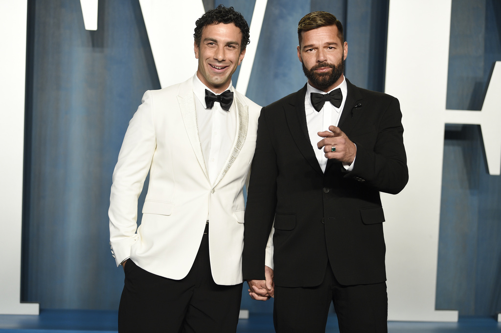 FILE - Jwan Yosef, left, and Ricky Martin appear at the Vanity Fair Oscar Party in Beverly Hills, Calif., on March 27, 2022. (Photo by Evan Agostini/Invision/AP, File)