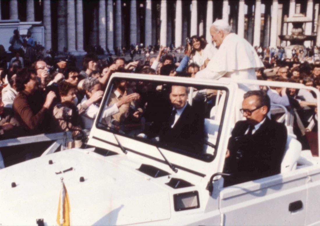 In 1981, Pope John Paul II was shot and seriously wounded in St. Peter’s Square by Turkish assailant Mehmet Ali Agca (MEH’-met AH’-lee AH’-juh).