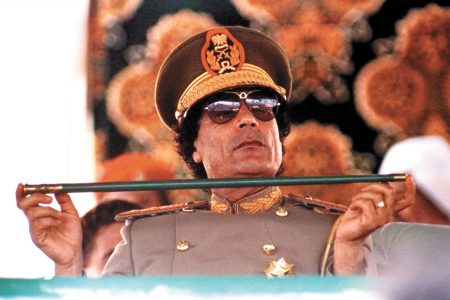 - FILE – In this Sept. 1, 1987 file photo, Col. Moammar Gadhafi Libya’s leader, holds a baton as he sits to review Libyan troops during the 18th anniversary celebration of Libya’s revolution in Tripoli, Libya. As rebels swarmed into Tripoli late Sunday, Aug. 21, 2011, and Gadhafi’s son and one-time heir apparent Seif al-Islam was arrested, Gadhafi’s rule was all but over, even though some loyalists continued to resist. (AP Photo/John Redman, File)