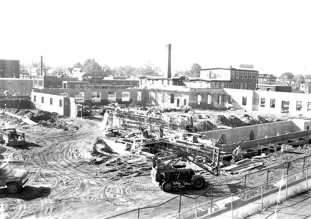 The beginning phases of construction for the Nashua Post Office on Spring Street are depicted in this photo, taken in the early 1960s from either the second or third floor of the former Spring Street Junior High School, which was next door to the Post Office until it was razed to make room for the Hillsborough County Courthouse.