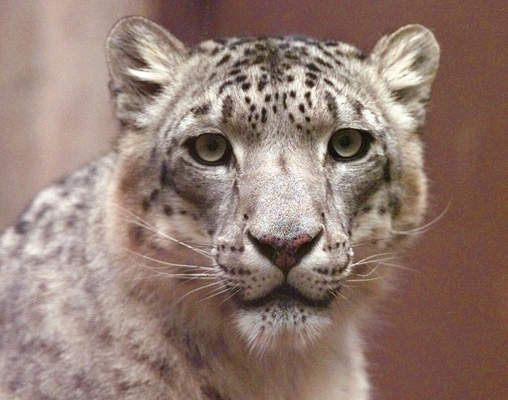 Pasha, an 8-year-old male snow leopard, shown in his pen at the Kansas City Zoo, Friday, April 23, 1999, in Kansas City, Mo., will be heading to the University of Missouri for double hip replacement surgery. Common for people and dogs, it's rare for cats to have such an operation. (AP Photo/Cliff Schiappa)