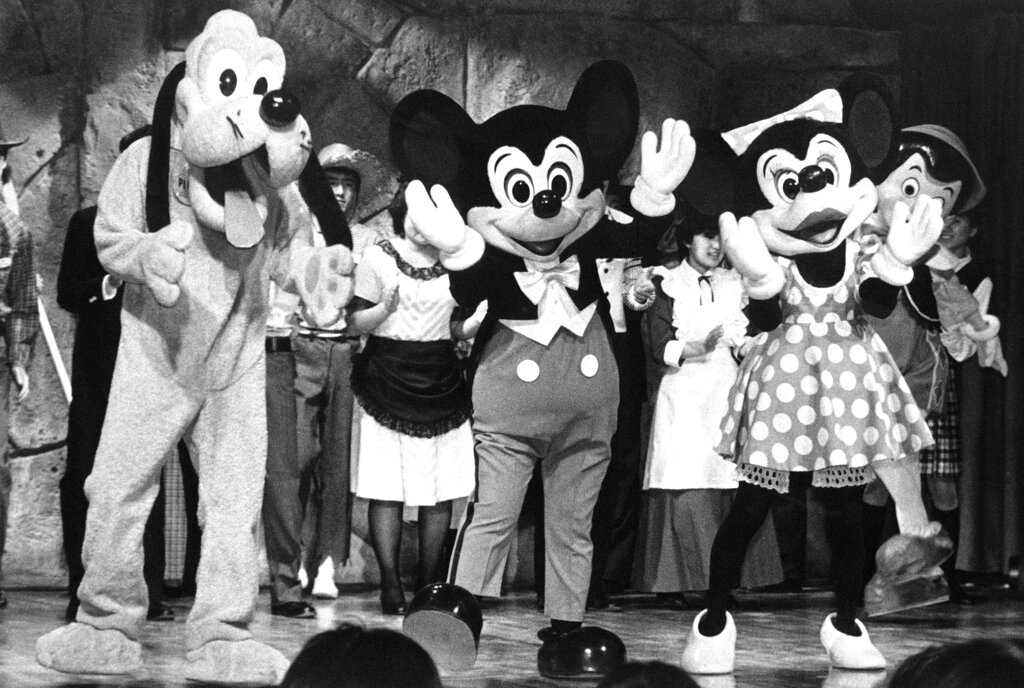 Mickey and Minnie Mouse and the dog, Pluto, entertain guests at Tokyo Disneyland on May 11, 1983. (AP Photo/LL)