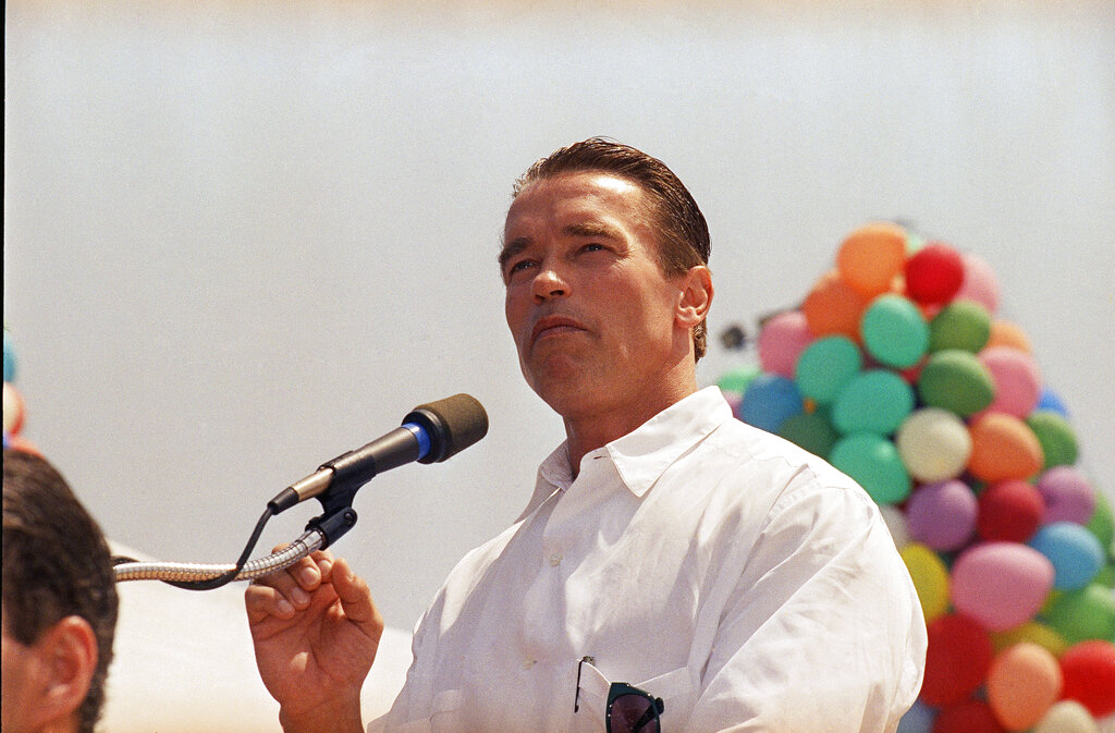 Actor Arnold Schwarzenegger actor is shown July 28, 1991. (AP Photo/Kevork Djansezian)
