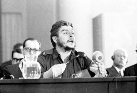 - Cuban Economic Minister Ernesto “Che” Guevara speaks during the closing session of the Inter-American Economic Conference at Punta del Este, Uruguay, Aug. 17, 1961. (AP Photo)