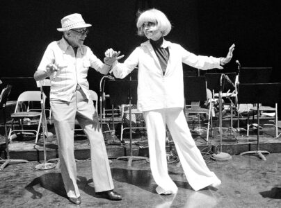 - Actor George Burns, left, and actress Carol Channing perform a dance routine for photographers in Los Angeles, where they are in rehearsal for their road show which is about to open here, Sept. 7, 1976. (AP Photo/Wally Fong)