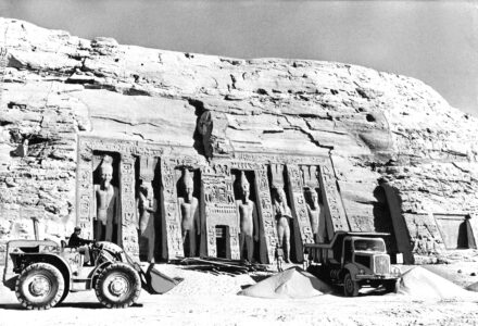 This is an exterior view showing the entrance to Queen Nefertari's Temple of Abu Simbel at its new site on top of Abu Simbel Mountain, Sept. 23, 1968. The Temple, built by King Ramses II, was presented to his wife Queen Nefertari, who dedicated it to the worship of Hat-hor, goddess of dance and music. (AP Photo)